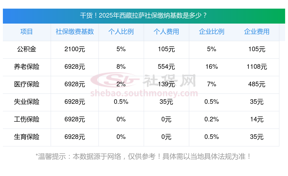 西藏拉萨社保多少钱一个月?下面和新社通小编一起来看看西藏拉萨最低标准社保费用明细参考,新社通app-社保缴费查询工具提供的最新数据如下: