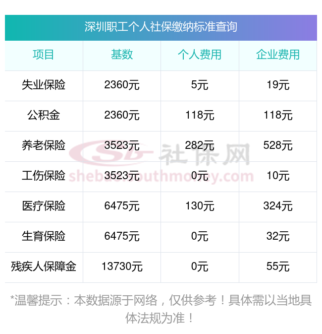 深圳社保一个月交多少钱,个人缴纳多少钱一个月?下面和社保丫丫一起来看看深圳最低标准社保费用明细参考,新社通app-社保缴费查询工具提供的最新数据如下: