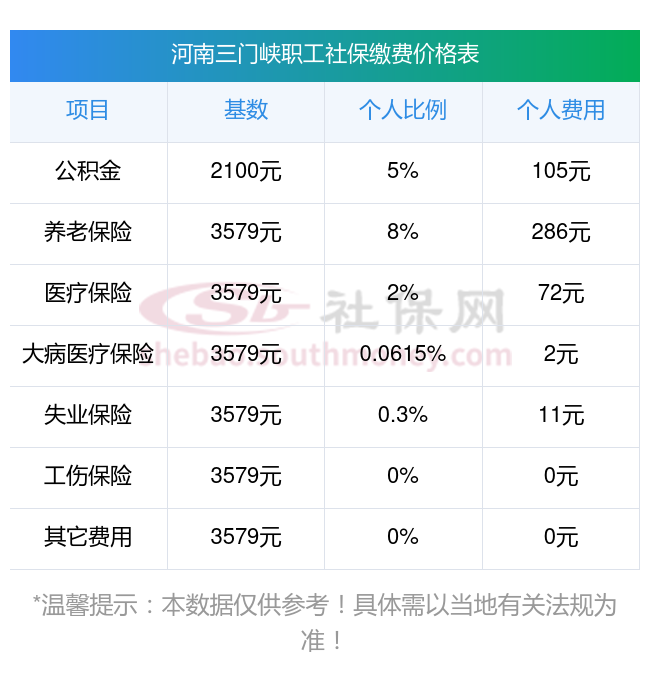 2025年河南三门峡社保缴费最低基数及个人和单位具体是多少钱?下表是2025年河南三门峡社保费用明细参考,新社通app-社保缴费查询工具提供的最新数据如下: