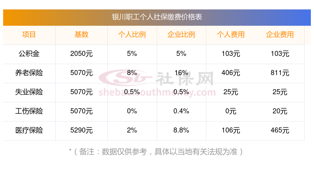 银川社保多少钱一个月?下面和新社君一起来看看银川最低标准社保费用明细参考,新社通app-社保缴费查询工具提供的最新数据如下: