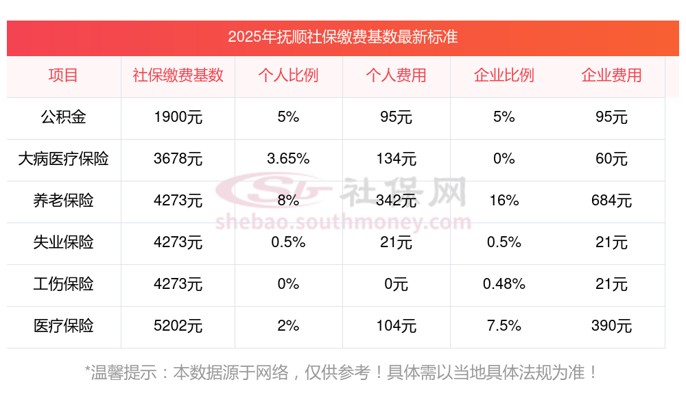 和社保网-APP一起来了解下:抚顺社保缴费比例是多少?2024-2025年抚顺社保费用明细参考,新社通app-社保缴费查询工具提供的最新数据如下: