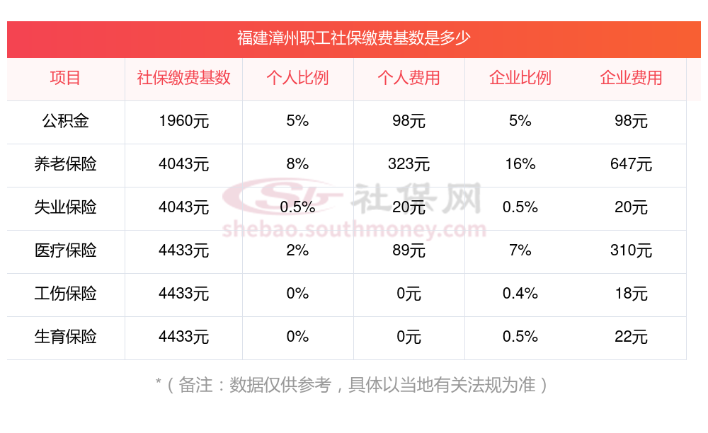 2025社保交多少钱?下表是2025年福建漳州社保费用明细参考,新社通app-社保缴费查询工具提供的最新数据如下: