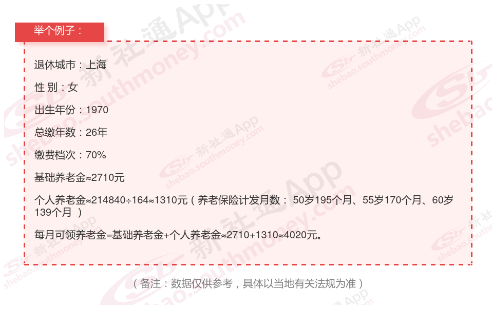 基本信息:女性,1970年出生,上海退休,缴费年限26年,缴费档次70%。