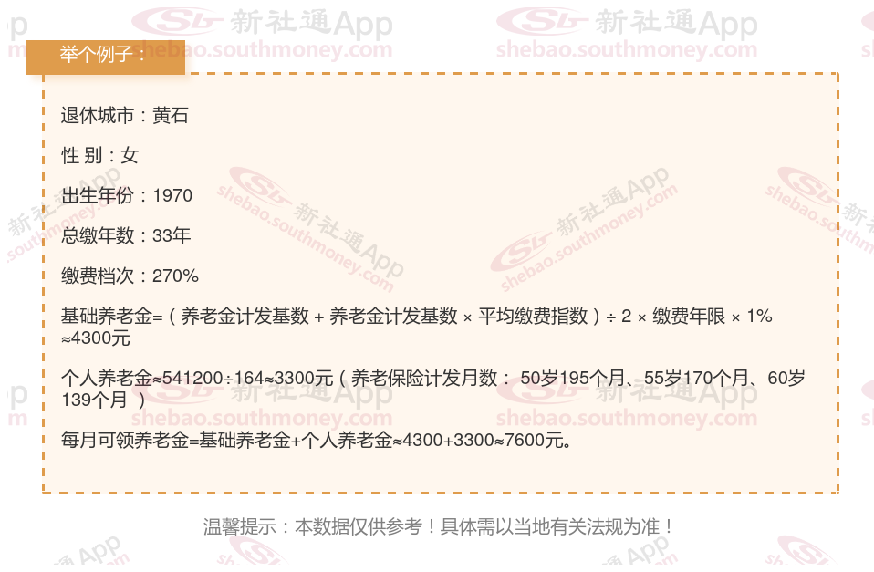那么社保缴纳33年,能领多少退休金?下面跟着新社通一起来看看例子: