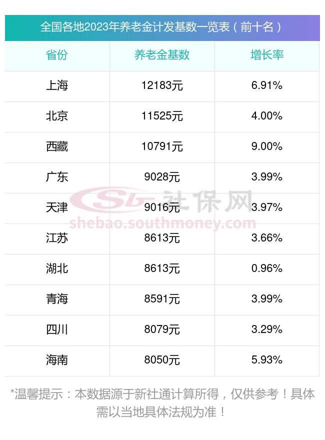 下面来看看全国各地2023年养老金计发基数增长率排名(前十名)