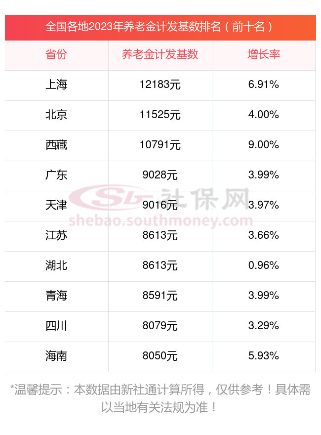 好多小伙伴想看看2023-2024年全国各地养老金计发基数排名前十,下面是社保网小编整理的最新数据,供您参考: