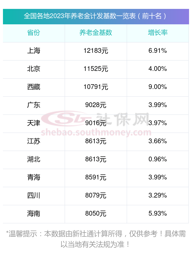 截至目前,2023年全国养老金计发基数排名前十名具体是多少呢?在这里简单分享一下: