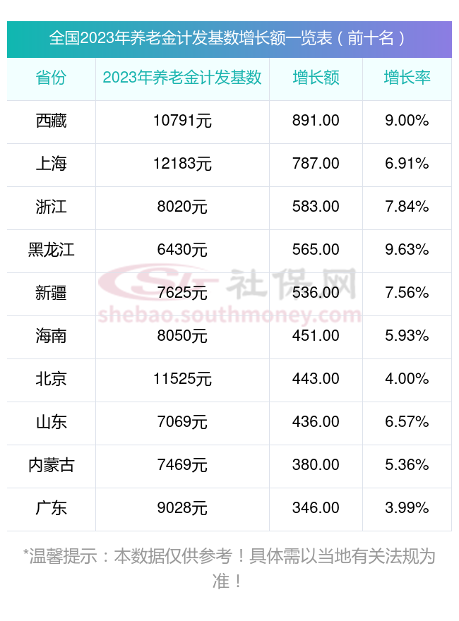 很多朋友好奇哪些省份的养老金计发基数涨幅较大?社保网小编整理了2023年养老金计发基数增长额排行榜前十名,分享如下