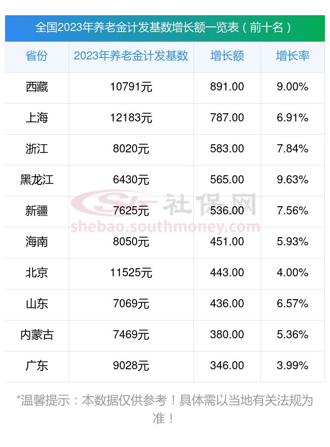 很多朋友好奇哪些省份的养老金计发基数涨幅较大?社保网小编整理了2023年养老金计发基数增长额排行榜前十名,分享如下