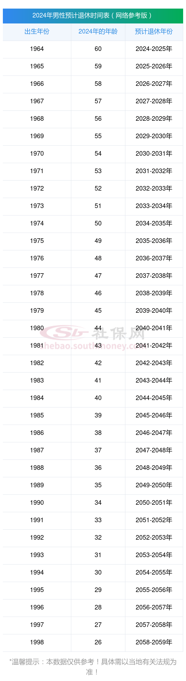 那么,你知道你哪一年可以退休吗?下面是网络整理的退休年龄对照表,供您参考!