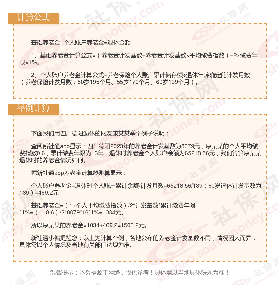 四川德阳退休工资养老金计算方法及公式2024年最新(举例说明)