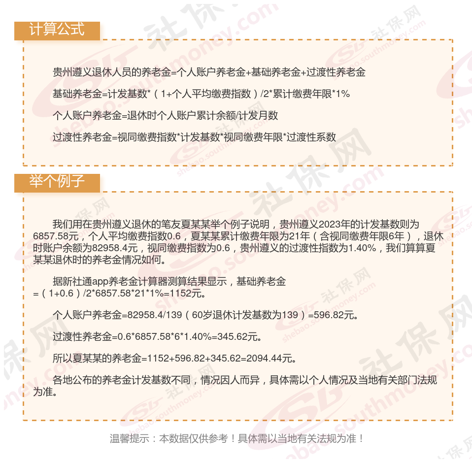 贵州遵义退休工资养老金计算方法及公式2024年最新(举例说明)