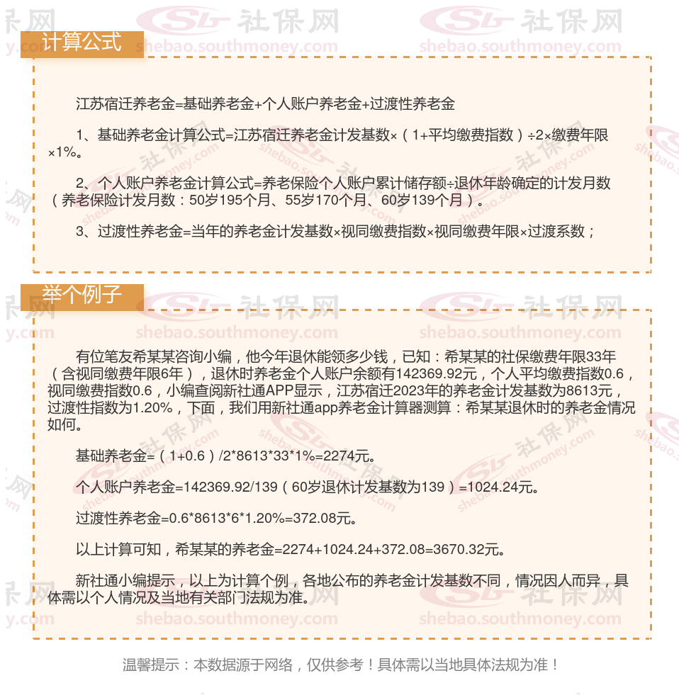 江苏宿迁退休工资养老金计算方法及公式2024年最新(举例说明)