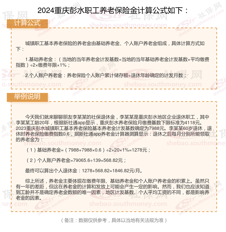 重庆彭水退休工资养老金计算方法及公式2024年最新(举例说明)