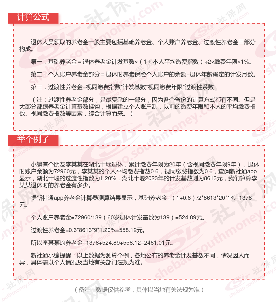 湖北十堰退休工资养老金计算方法及公式2024年最新(举例说明)