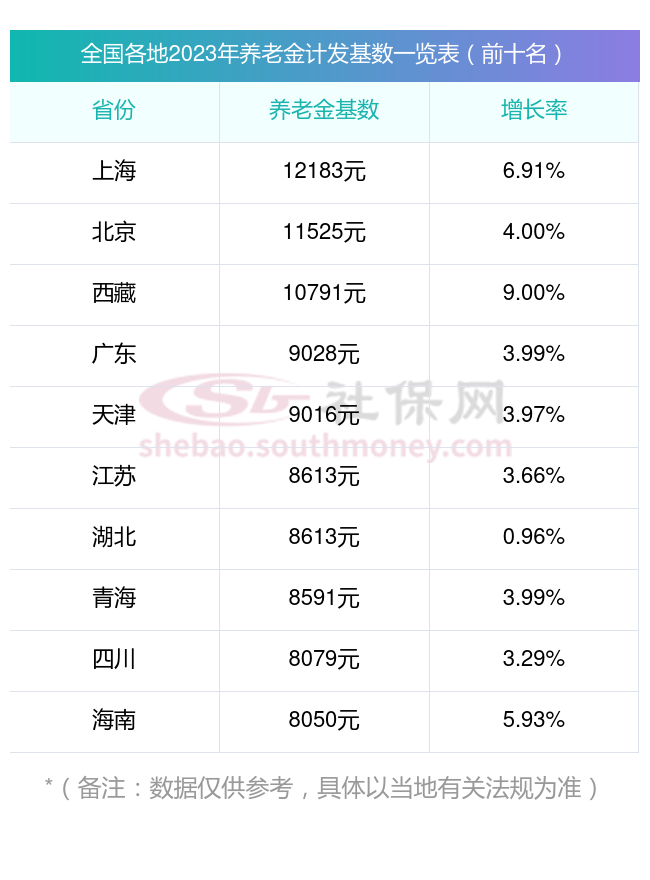 据新社通app显示,下面来看看全国各地2023年养老金计发基数一览表(前十名)