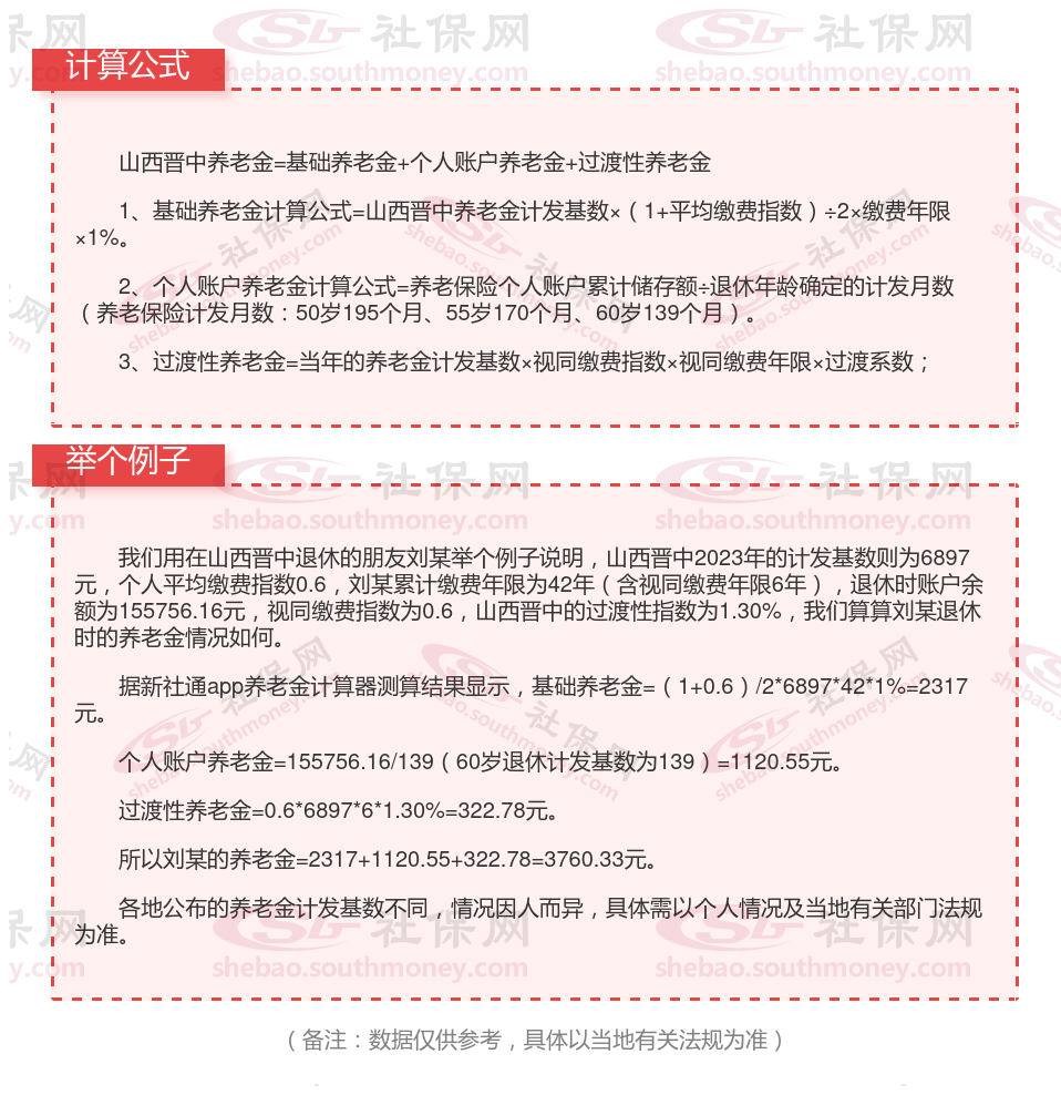 山西晋中退休工资养老金计算方法及公式2024年最新(举例说明)