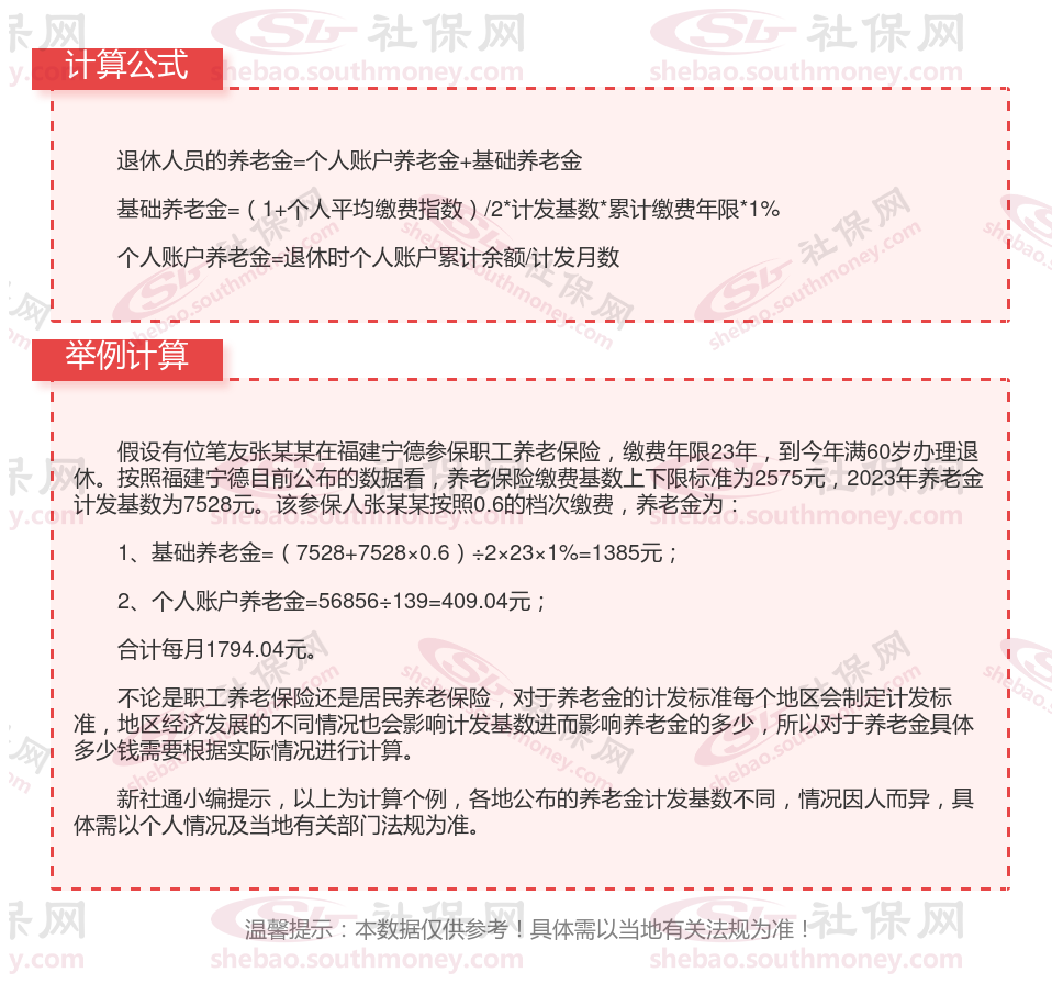 福建宁德退休工资养老金计算方法及公式2024年最新(举例说明)
