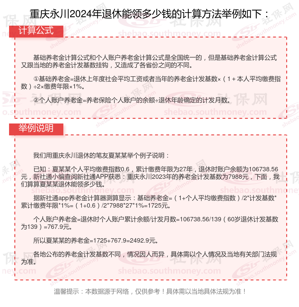 重庆永川退休工资养老金计算方法及公式2024年最新(举例说明)
