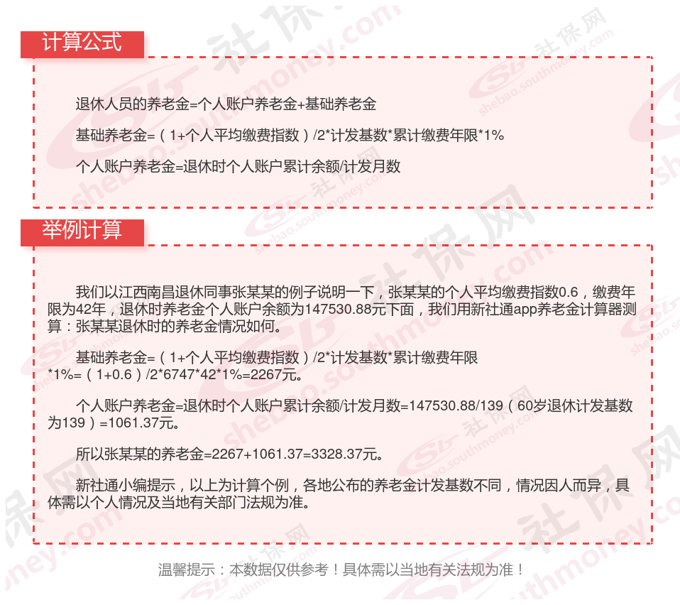 江西南昌退休工资养老金计算方法及公式2024年最新(举例说明)