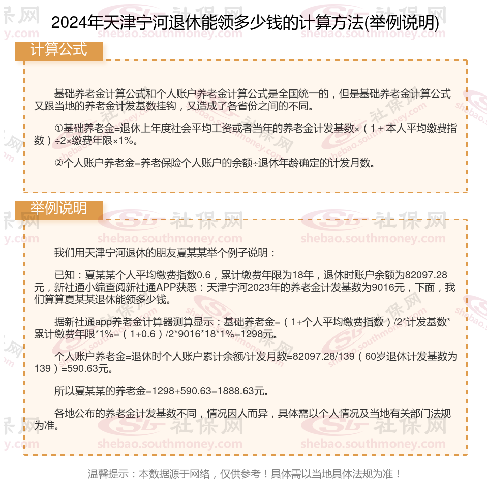 天津宁河退休工资养老金计算方法及公式2024年最新(举例说明)