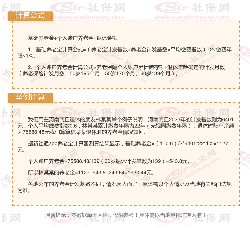河南商丘退休工资养老金计算方法及公式2024年最新(举例说明)
