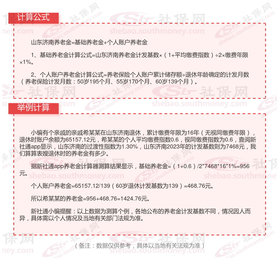 山东济南退休工资养老金计算方法及公式2024年最新(举例说明)