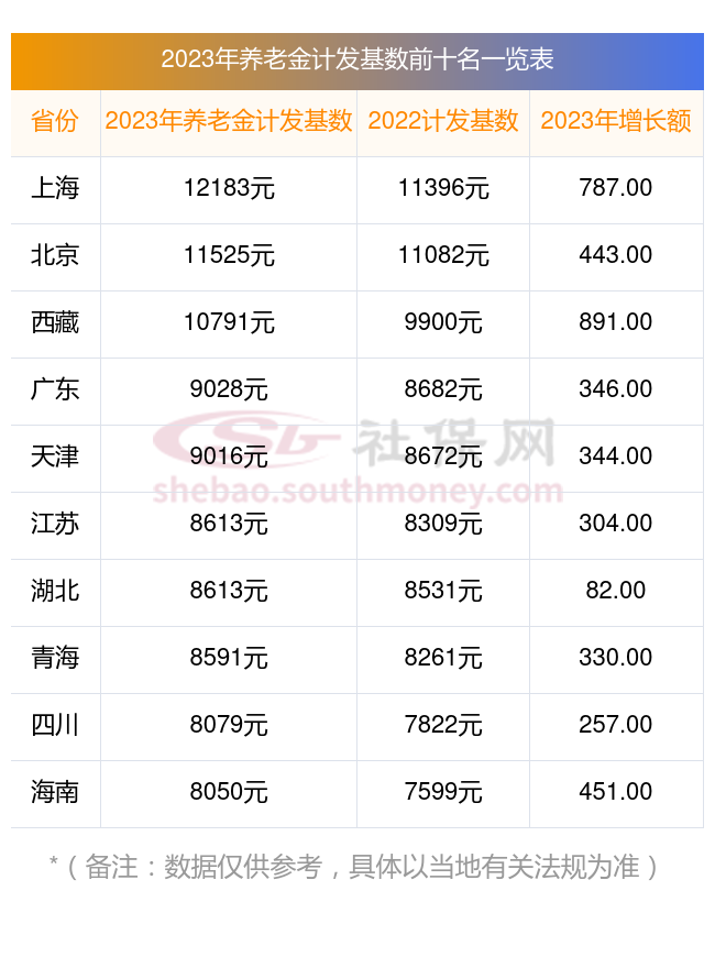 截至目前,2023年全国养老金计发基数排名前十名具体是多少呢?在这里简单分享一下: