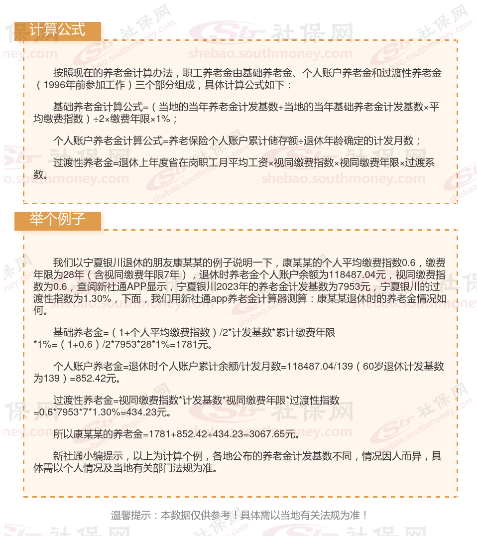 宁夏银川退休工资养老金计算方法及公式2024年最新(举例说明)