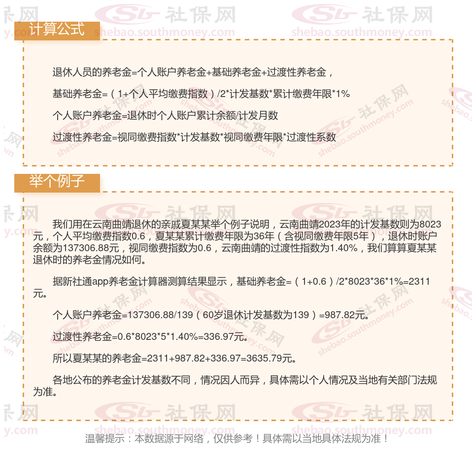 云南曲靖退休工资养老金计算方法及公式2024年最新(举例说明)