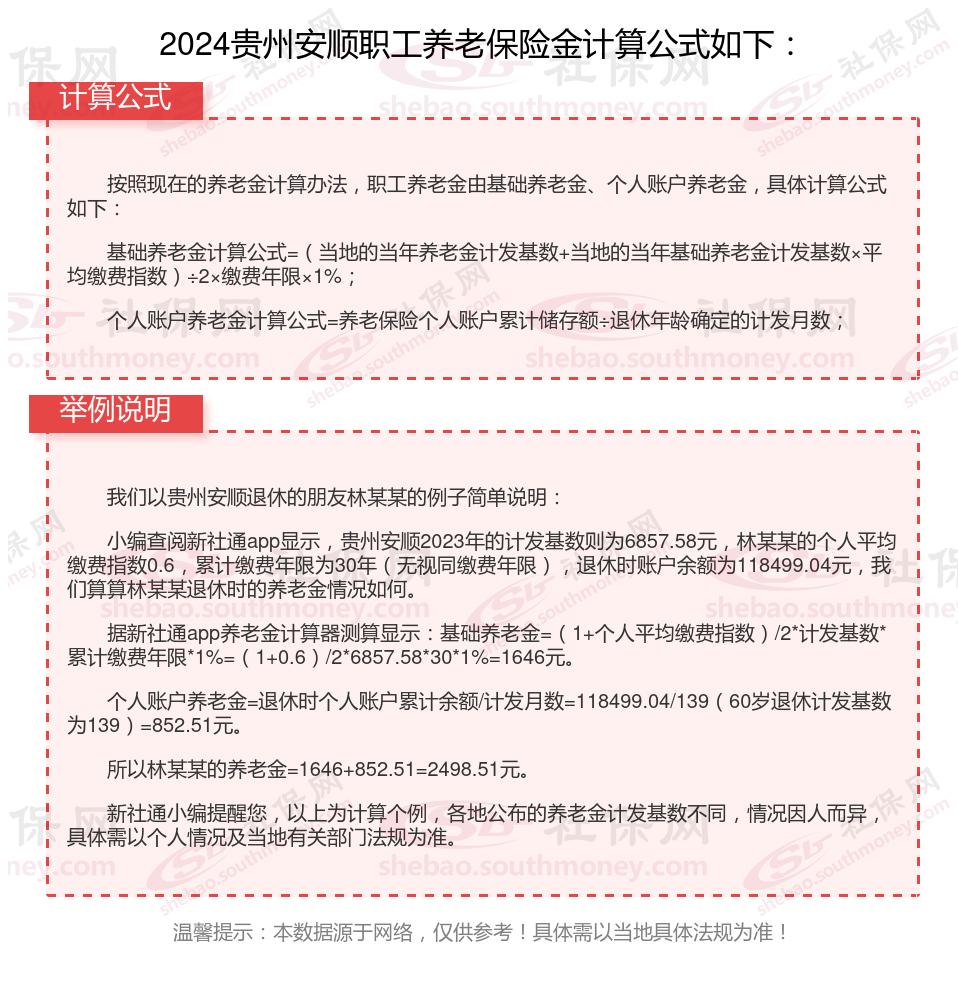 贵州安顺退休工资养老金计算方法及公式2024年最新(举例说明)