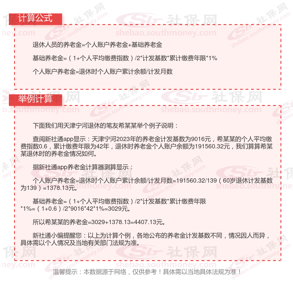 天津宁河退休工资养老金计算方法及公式2024年最新(举例说明)