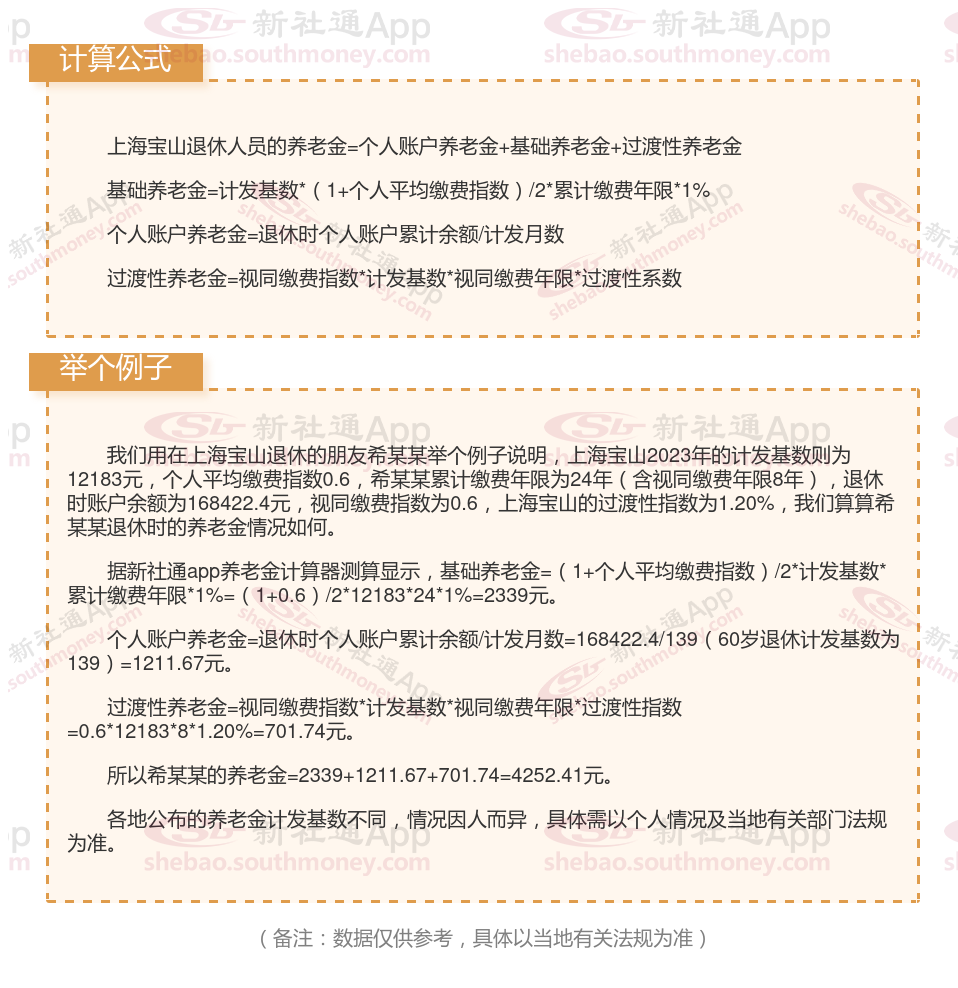 上海宝山退休工资养老金计算方法及公式2024年最新(举例说明)