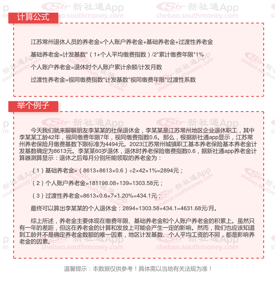江苏常州退休工资养老金计算方法及公式2024年最新(举例说明)