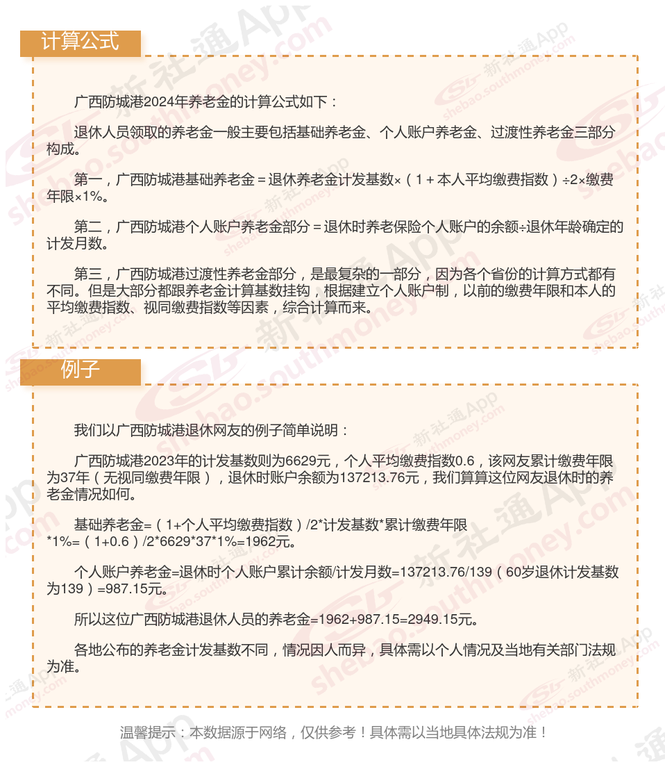 广西防城港养老金计发基数是多少?据新社通app获悉,随着2024年的到来,对于2023年新增加的退休人员来说,还有养老金重算补发让他们牵肠挂肚,目前已经有多地公布了2023年养老金计发基数,养老金重算补差正在推进,那么广西防城港养老金计发基数公布后2023年新退休人员补差怎么算?补发金额什么时候能到账呢?下面就随新社通app小编一起来看看详情吧。
