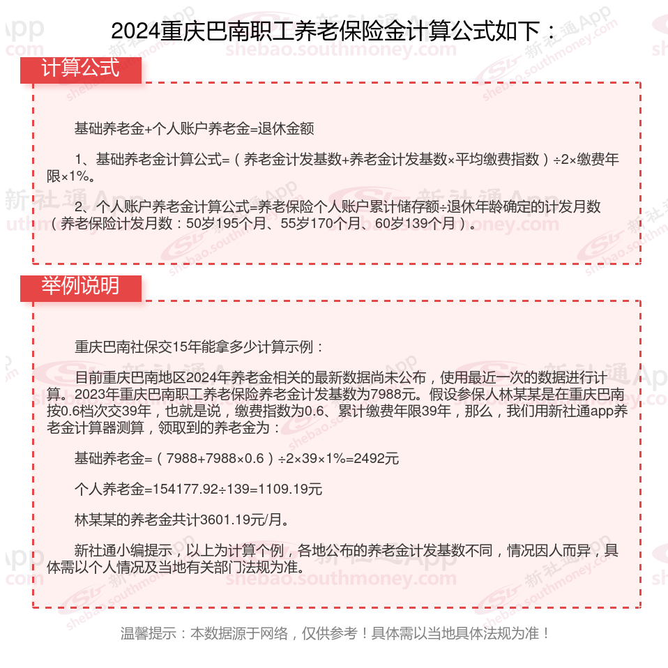 重庆巴南退休工资养老金计算方法及公式2024年最新(举例说明)