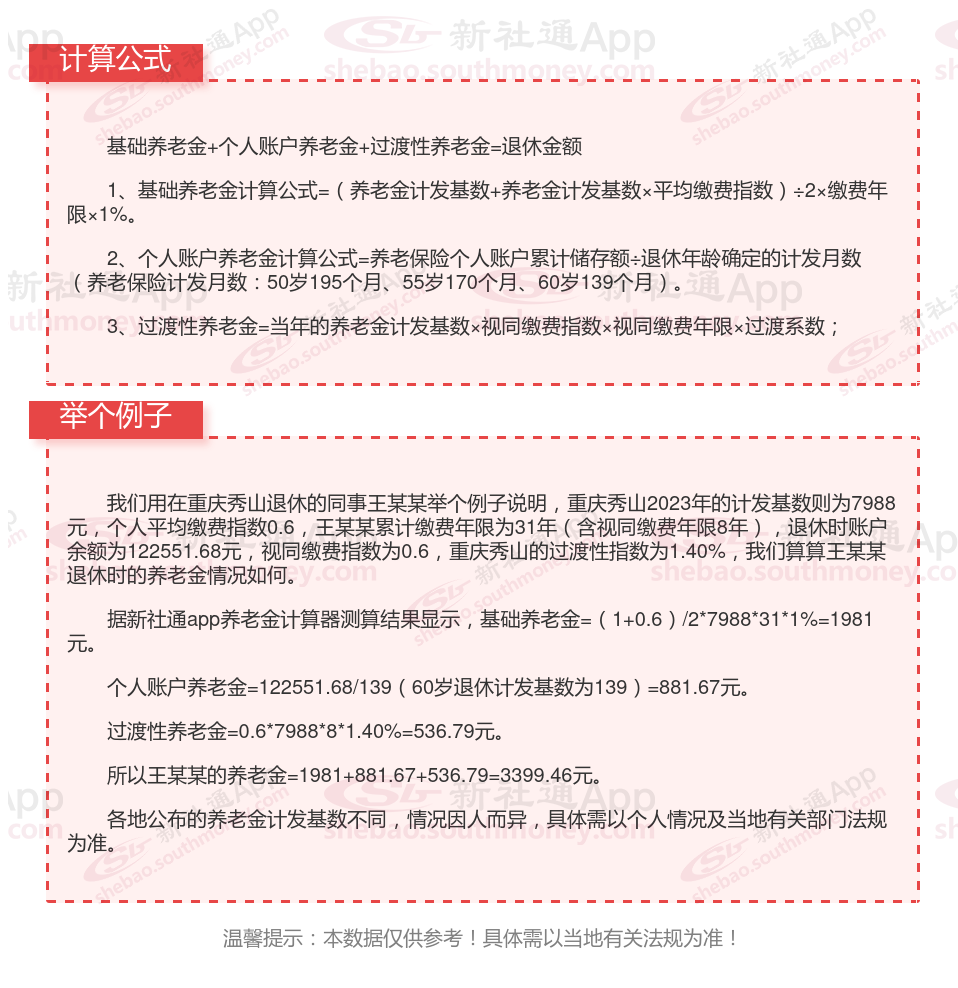 重庆秀山退休工资养老金计算方法及公式2024年最新(举例说明)