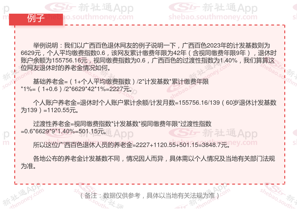广西百色公布2023年养老金计发基数,退休养老金涨多少怎么算?据新社通app显示,根据有关法规,2023年广西百色企业职工基本养老金计发基数为每月6629元。与2022年广西百色企业退休职工养老金计发基数6442元相比,2023年增加187元,增幅为2.9%。
