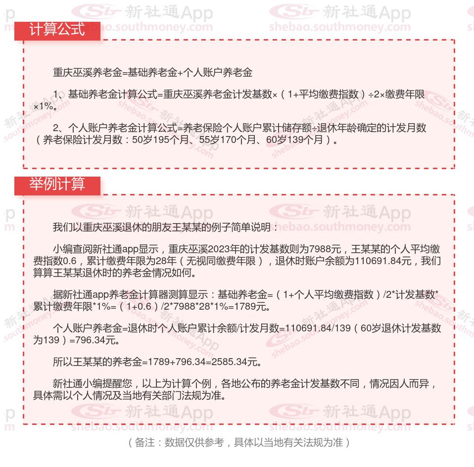 重庆巫溪退休工资养老金计算方法及公式2024年最新(举例说明)