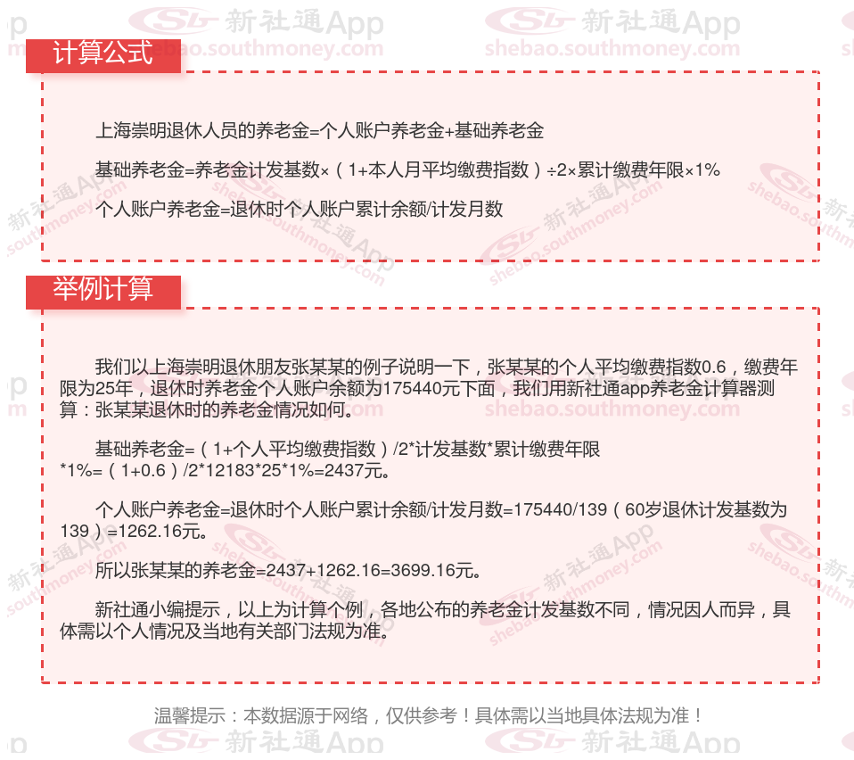 上海崇明退休工资养老金计算方法及公式2024年最新(举例说明)
