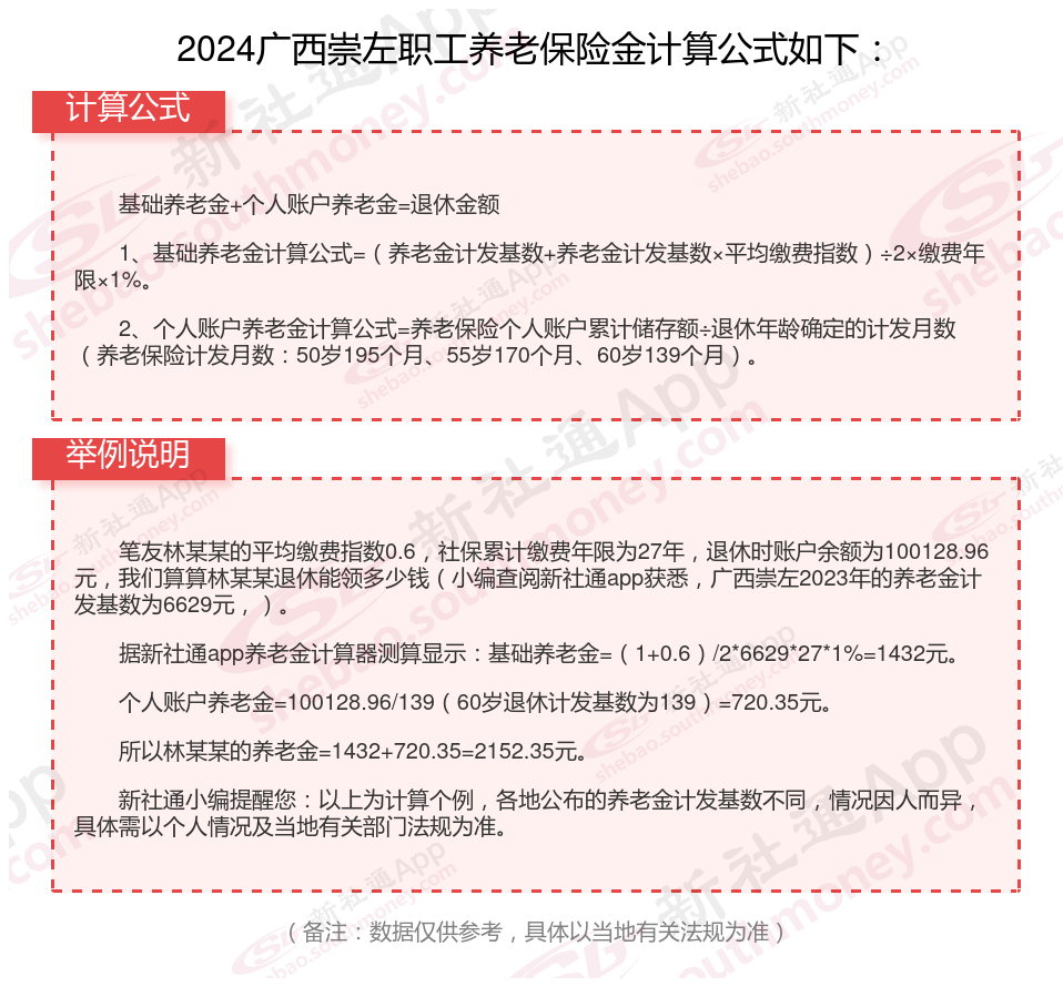 广西崇左退休工资养老金计算方法及公式2024年最新(举例说明)