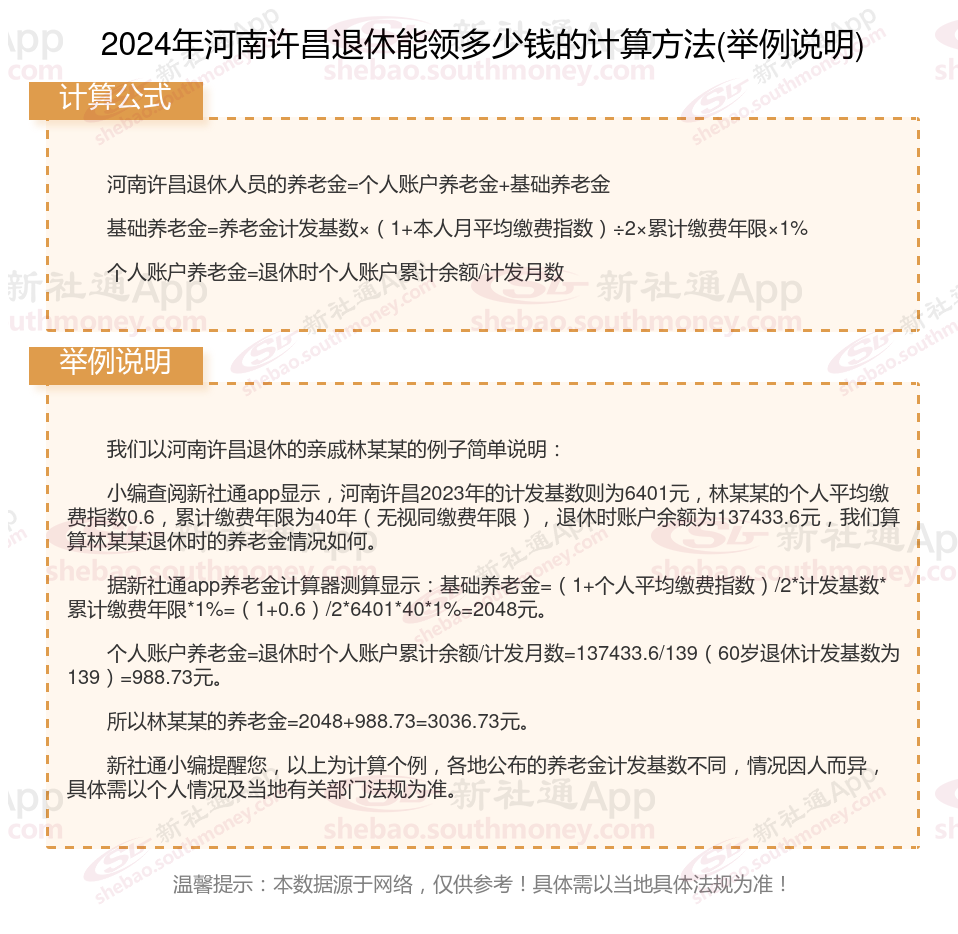河南许昌退休工资养老金计算方法及公式2024年最新(举例说明)
