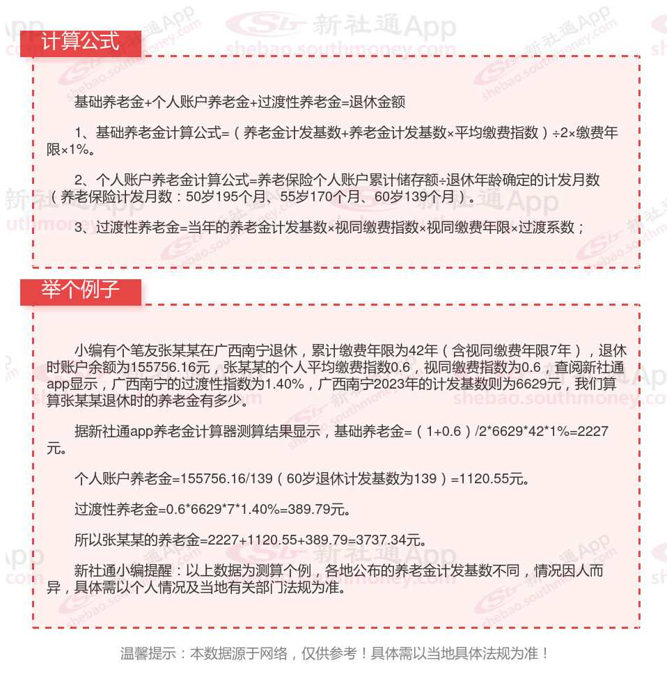 广西南宁退休工资养老金计算方法及公式2024年最新(举例说明)