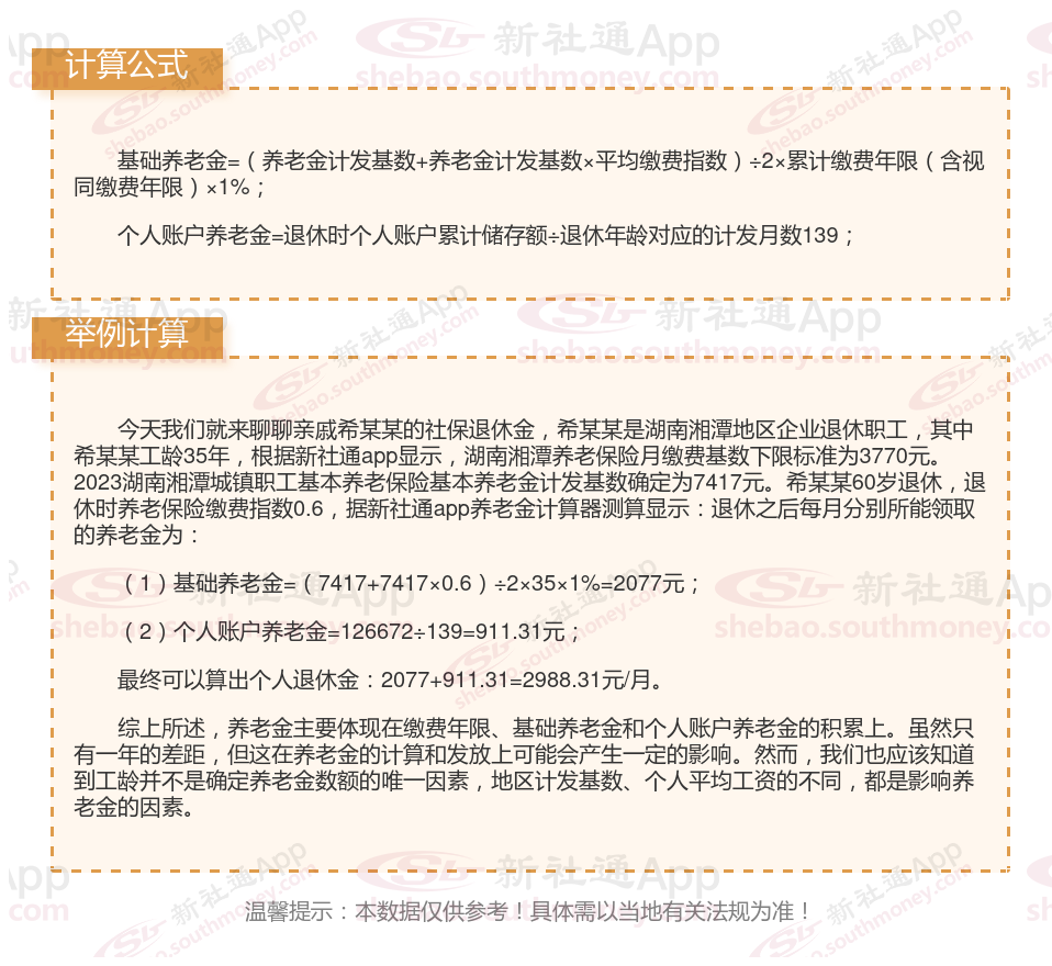 湖南湘潭退休工资养老金计算方法及公式2024年最新(举例说明)