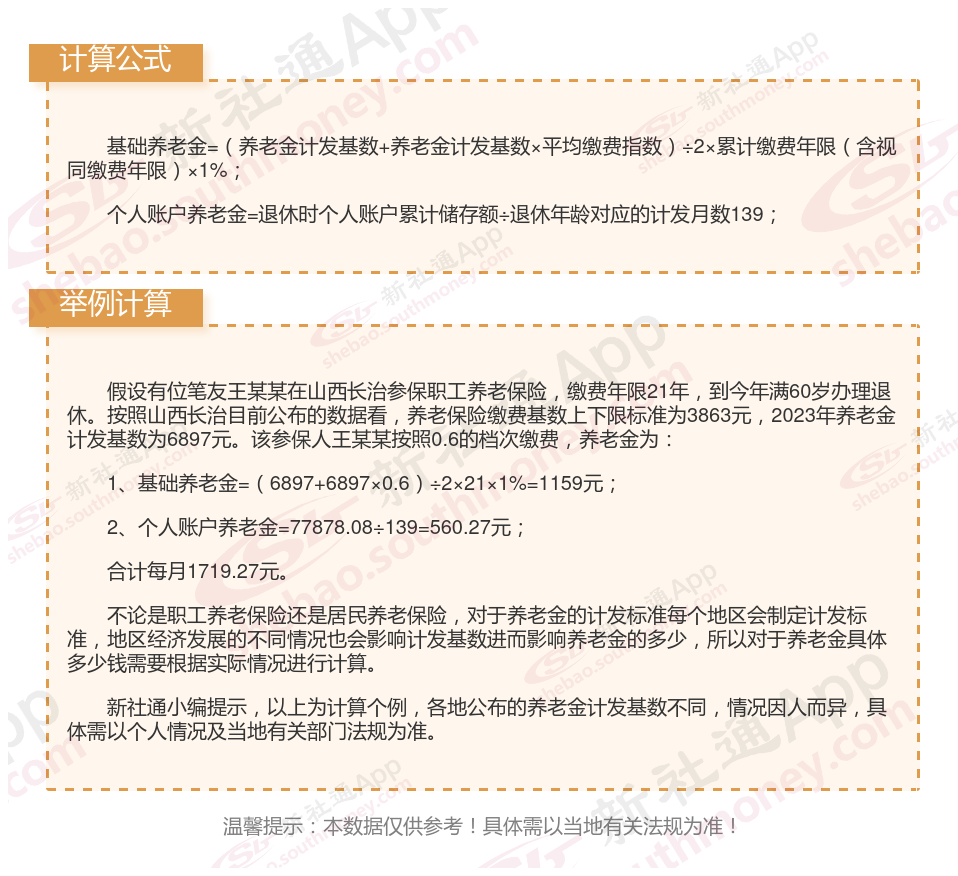 山西长治退休工资养老金计算方法及公式2024年最新(举例说明)