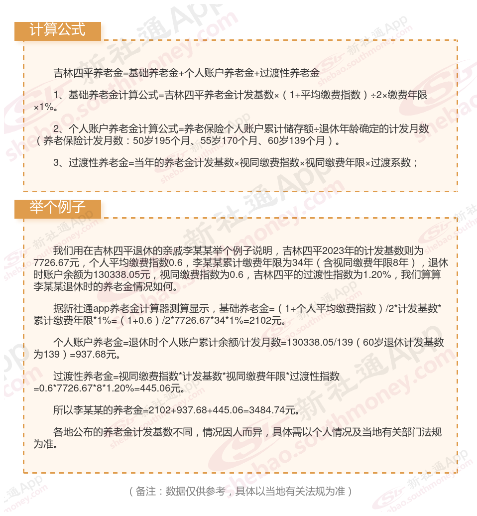 吉林四平退休工资养老金计算方法及公式2024年最新(举例说明)