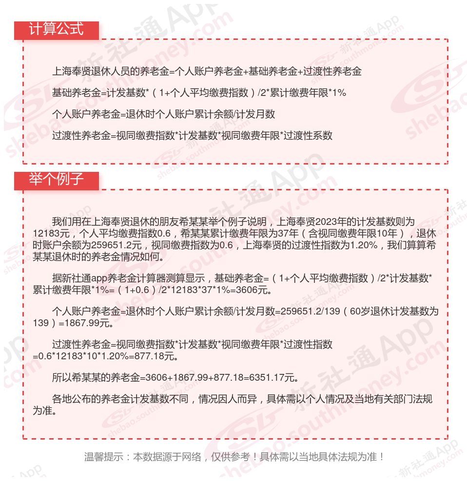 上海奉贤退休工资养老金计算方法及公式2024年最新(举例说明)