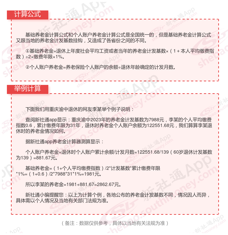 重庆渝中退休工资养老金计算方法及公式2024年最新(举例说明)