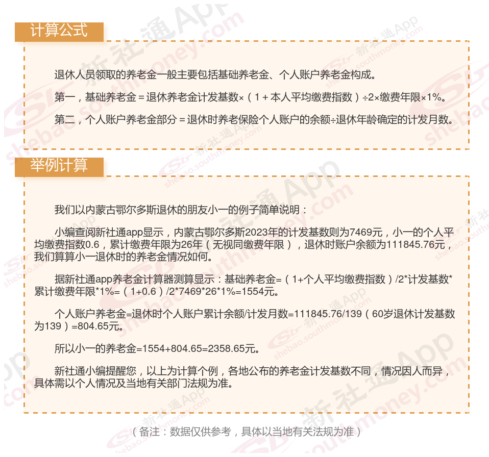 内蒙古鄂尔多斯退休工资养老金计算方法及公式2024年最新(举例说明)