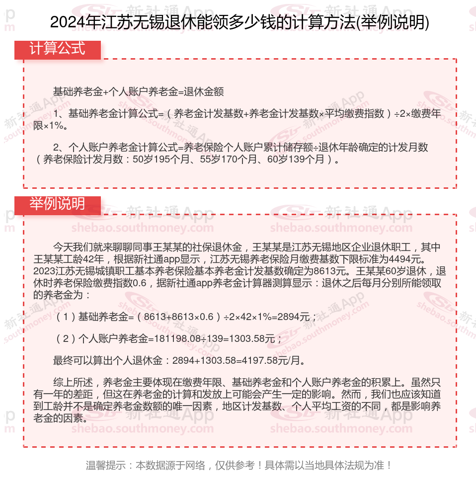 江苏无锡退休工资养老金计算方法及公式2024年最新(举例说明)